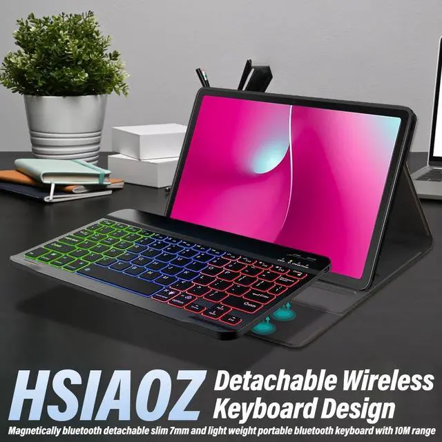 HSIAOZ Rainbow Backlight Detachable Wireless KeyboardDesigned for T-Mobile REVVL Tab 2 10.1 Inch 2025