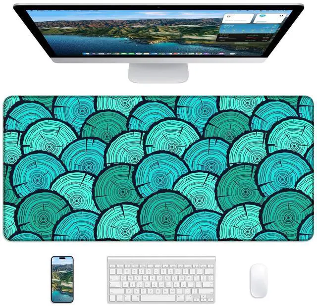 Velluxion XL Gaming Mouse Pad, 31.5x17.5'' Large Desk Mat with Anti-Slip Rubber Base & Stitched Edges for Gaming, Office, Home - Annual Rings