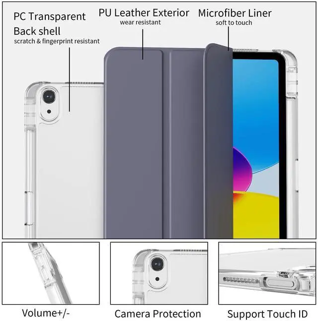 Trifold Stand Cover: Featuring a tri-fold design, the iPad 10th gene