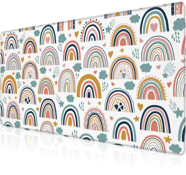 Mouse Pad, Large Boho Rainbow Desk Mat, Extended Non-Slip Gaming Keyboard Mousepad Desk Pad, Thick Stitched Edges Waterproof Mouse Mat 31.5"x15.7" (Scandi Rainbow and Stars Clouds)