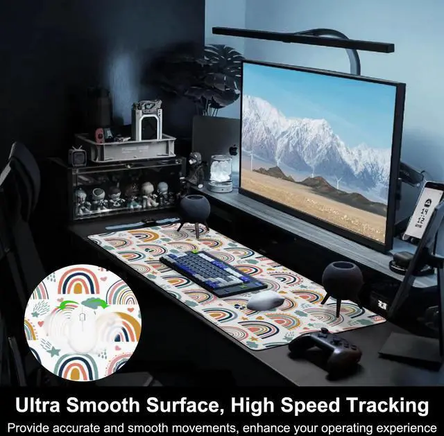 [Exquisite Design]We carefully select the most popular pictures for you. The high-definition printing technology ensures more clearer details and more vibrant colors. It will add more vibrancy to your workplace. ^^ [Extended Size]The size of this mouse pad is 31.5" x 15.7". It is large enough to accommodate your keyboard and mouse perfectly. What's more, you also can put your cups or other stuffs on it. The Large size ensures free movements of your mouse without any interruptions. Therefore, you don't have to continually adjust the mouse mat like the traditional one.