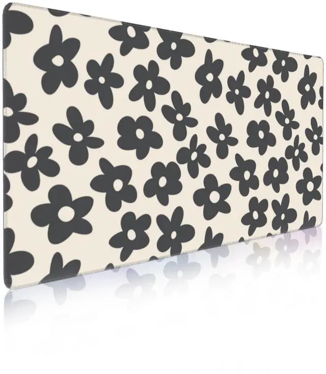 Vintage Black Flower Mouse Pad Gaming,Groovy Floral Mousepad Desk Mat,Smoothing Fabric Mousepad for Fluid Control,Ultra-Stable Non-Slip Rubber Base Mouse Pad,Stitched Edges(31.5x15.7 in)
