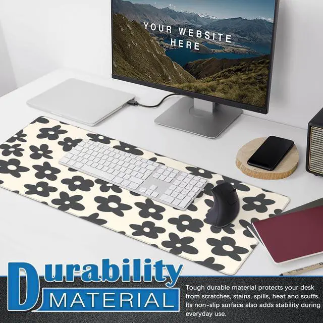 Large Mouse PadThe desk mouse pad measures 31.5 x 15.7 inch, with 2 mm thickness, big enough to accommodate your computer, laptop, keyboard and other desk items, and still leave plenty of space for your mouse to move all around. ^^ High qulity Workmanship and MaterialsThe mouse pad has delicate stitched edges, it is individually hand crafted with high quality warkmanship so not fray, deformation and degumming in prolonged use, relax to use. The computer mouse pad is thick and feels soft in the hand, which will provide comfortable support while typing, reading, writing and even sleepping.
