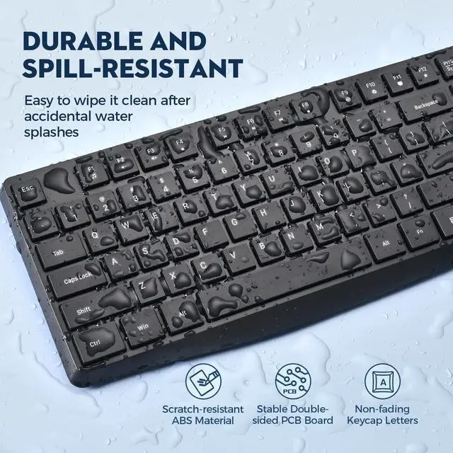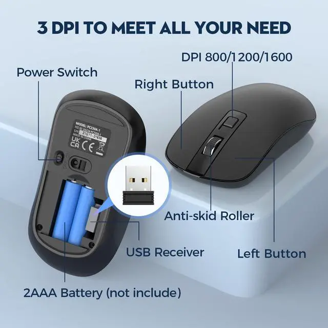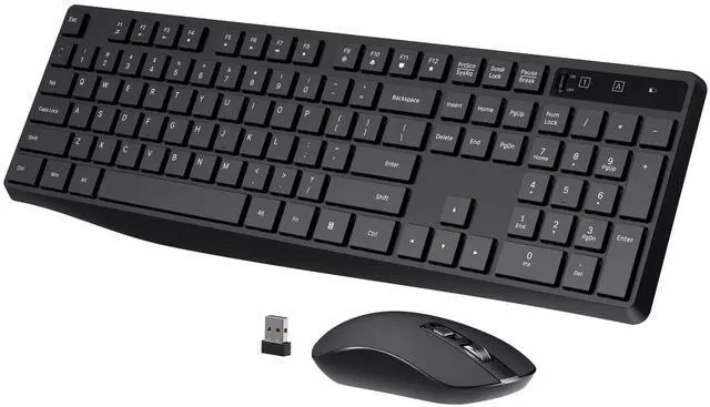 Reliable Plug and PlayAdvanced 2.4 GHz wireless connection delivers the reliability and speed of a corded connection with wireless convenience and freedom up to 33 ft away, so you can forget about drop-outs and delays and you can take wireless keyboard and mouse wherever you use your computer (USB receiver is in mouses battery compartment) ^^ 3 DPI Levels for Gaming and WorkThe optical wireless mouse have the 800/1200/1600 DPI allows you to track it more smoothly on a variety of surfaces. Usually 800/1200 DPI for office, DPI 1600 for entertainment like gaming at home ^^ Comfortable & Smooth TypingThe design of this keyboard and mouse wireless creates a comfortable typing experience thanks to the low-profile, quiet keys and standard layout with full-size F-keys, number pad, and arrow keys.