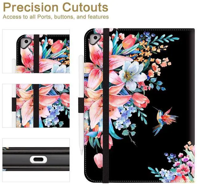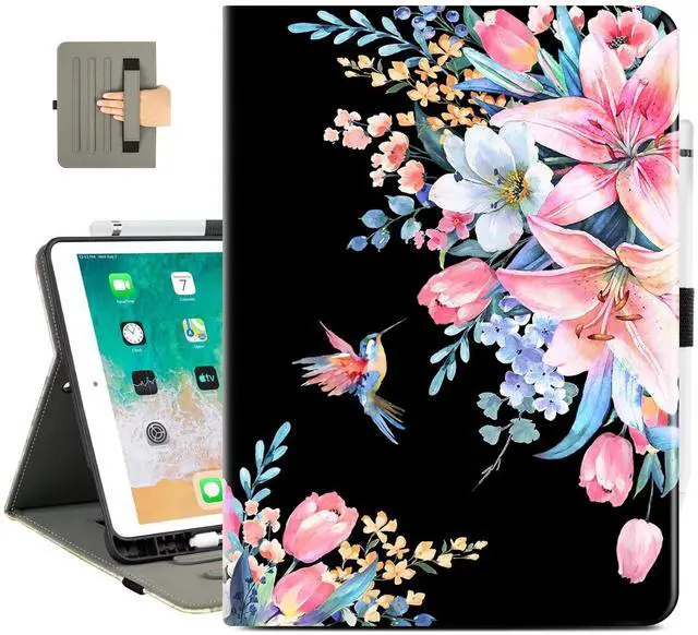 Screen Protection Band: Tie and lock the iPad Case with the Screen Protection Band when not using the iPad. To keep the case closed if the device falls, and gives much better protection to the screen. Add an extra lock to your device and privacy when you're not using; The Convenient Hand Strap beside the stripes enables you to hold it more stable when stays upright. Same comfort for single-handed use.
