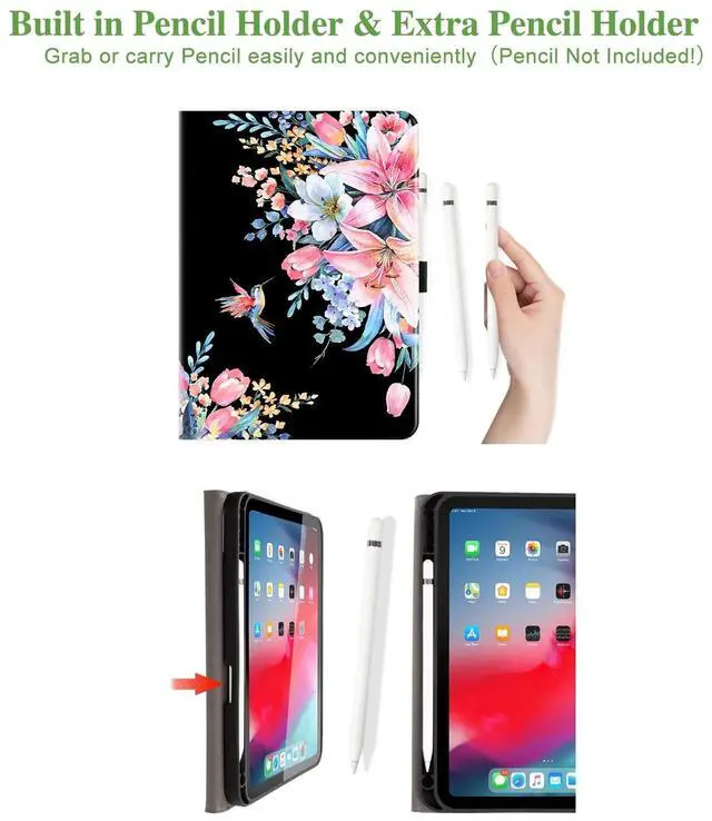 Pencil Holders: Built-in Pencil Holder and Side Elastic Band Pencil Holder, this design to grab or carry Pencil easily and conveniently (Pencil is NOT Included! ); The Front Pocket on the front for you to store your cards, pics and notes. ^^ Safety Screen Protection Strap & Internal Hand Strap-- Safety