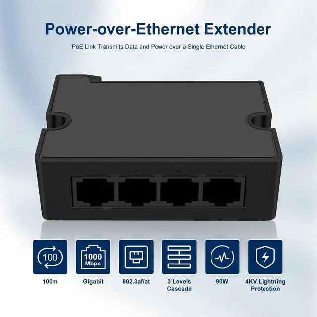 Play: This PoE extender requires no software or configuration, making it easy to set up. You only need a network cable to expand your PoE network ^^ Works with IEEE 802.3 af/at PoE Devices ^^ It has a compact size ( 3.2" 2.2" 0.9" ), supports wall mount and din-rail mount, and can be installed anywhere as needed