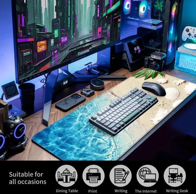 Durable, Precision-Engineered SurfaceCrafted with a fine-textured fabric, this computer mouse pad offers the ideal balance between smooth glide and superior control. Its specifically designed to enhance mouse tracking, providing exceptional precision for both optical and laser sensors. Whether youre gaming or working, the surface ensures your movements are reflected with remarkable accuracy, making it a great choice for anyone seeking a desk mat for desktop use. Plus, the material is highly durable, reducing wear over time and preventing the common fraying issues seen with lower-quality mouse pads. Non-Slip Base for Stability and ProtectionNo more worrying about your mouse pad shifting mid-game! This large mouse pad features a soft, dense non-slip rubber base that keeps the desk pad securely in place.