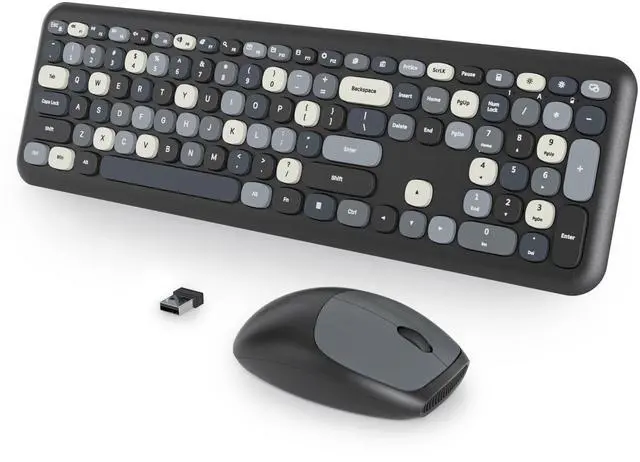Typewriter Wireless Keyboard and Mouse Set - This black wireless keyboard mouse combines functionality with modern design, offering a sleek and minimalist appearance. The keyboard features low-profile, quiet keys with a smooth tactile feel, and available in a range of stylish colors to match your personal aesthetic. ^^ Full Size and 12 Function Hotkey Design - This retro keyboard and mouse wireless is equipped with multi-functional hotkeys, offering seamless access to your most-used functions like media control, volume adjustment, and quick navigation. The wireless connection minimizes desk clutter, making it ideal for both work and leisure.