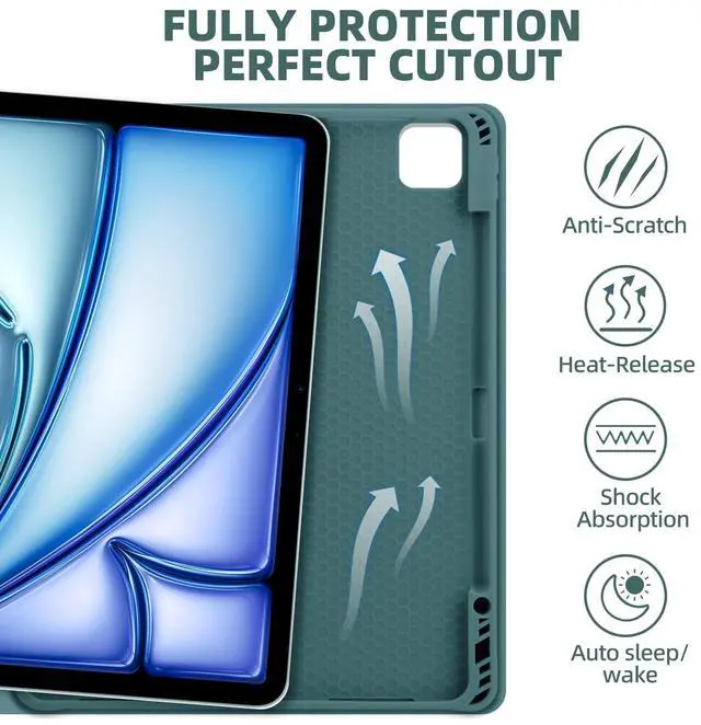 Gen 2018 (models: A1876/A1983/A1895/A2014). Please be kindly check your iPad model number before purchasing. ^^ Magnetically Detachable KeyboardThe iPad pro 12.9 -inch & iPad air 13-inch keyboard case includes a magnetically detachable Bluetooth keyboard. The Bluetooth keyboard connects quickly and has a stable connection, which is incredibly helpful when you're on the go. It can also be used as a separate keyboard that connects to other devices via Bluetooth (Windows, iOS and Android supported). ^^ Multiple Viewing AnglesThe iPad 12.9 /13-inch keyboard case has 3 built-in viewing angles with non-slip slots to ensure a comfortable viewing angle - typing, reading, gaming - giving you amazing versatility. Easily adjust to the comfortable angle that suits you best, ideal for working, writing or watching movies at the office, school or home. ^^ iPad Fully Protection & Auto sleep/wakeFor iPad air 13 inch & iPad Pro 12.9 inch 6th/5th Generation 2022/2021 keyboard case provides full edge coverage and 360 full protection from scratches, bumps, or dents, shielding your tablet from all types of dropping mishaps. The auto sleep/wake function of the iPad pro keyboard case protects and conserves the iPad battery life.