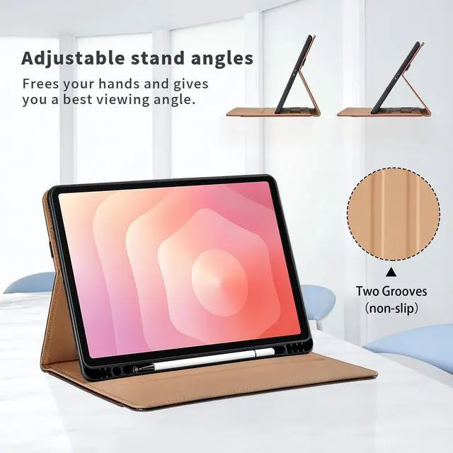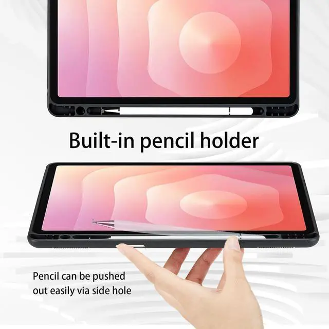 Soft TPU SiliconeProduct Features: Shockproof ProtectionSamsung Galaxy Tab S11 flip case with soft TPU inner shell easy to install and remove even not easy to be deformed when used for a long time. High-Quality PU LeatherOuter premium waterproof PU leather shell with smooth handfeel, safe and environmental friendly, durable. Easy to clean and anti-fingerprint. Elastic Pencil Sloton the side of the Samsung Galaxy Tab S11 case leather is a elastic stylus pen holder for pencil that securely store and carry your pencil for when on-the-go. Flexbile TPU back coverEasy to install and remove your Samsung Galaxy Tab S11 case tablet against fingerprint, back shell dot design with heat-release function. Perfect DesignDimensions and holes designed for specific models ensure that you can easily use all features (buttons, speakers, cameras) and do not affect the normal use of the tablet.