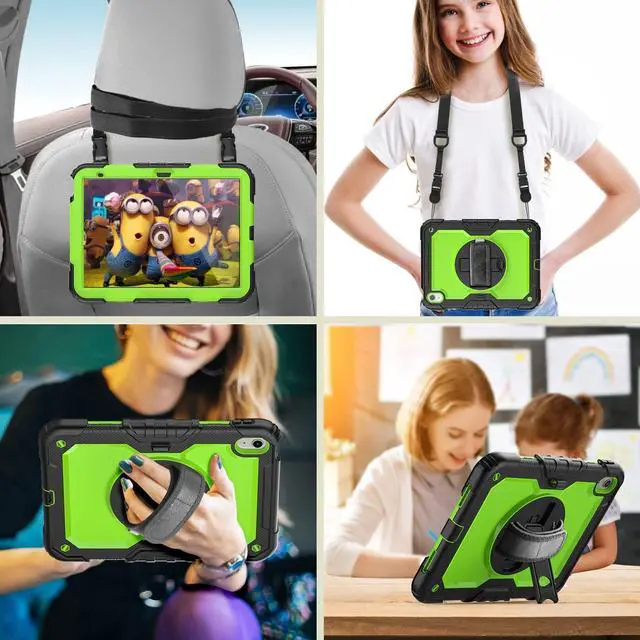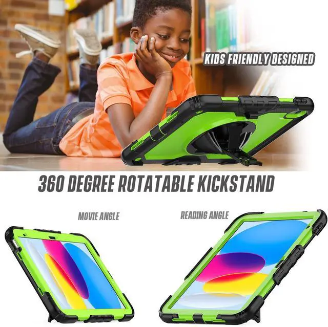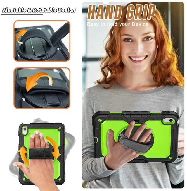 Hand Strap: 360-degree rotating swivel stand supports position of 3 angles(Vertical, Horizontal, and Halfway between), ideal for watching videos, conferences and travelling. Soft rotating handle strap prevents falling of iPad Generation 10th tablet, featuring convenient use for teachers, students, waiters, doctors, nurses and conference presenters.