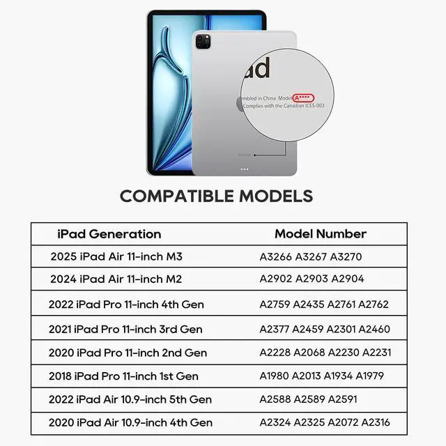 ^^: Safeguard your iPad with the front and back magnetic dual-sided protection, featuring a premium PU leather exterior and durable aluminum alloy keyboard frame for long-lasting use.