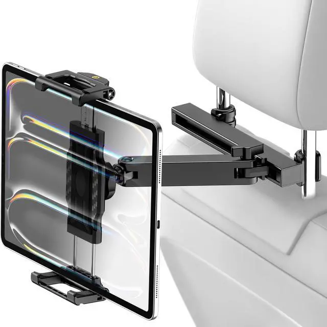 Upgrade Extension ArmSlide Rail Design - The arm base allowing moved left and right, you can swing the tablet in the middle of two seats so both passengers can watch. Twist the stretchable arm to easily change viewing distance, 360 rotation ball joint allows for flexible viewing angles, enhancing the in-car entertainment experience. Great for favorite shows or playing games during car travel. ^^ In-car Entertainment & Kid-friendlyThe tablet car mount for back seat is an essential relaxation accessory to roadtrip, it can be used for watching video, reading, gaming, and music.