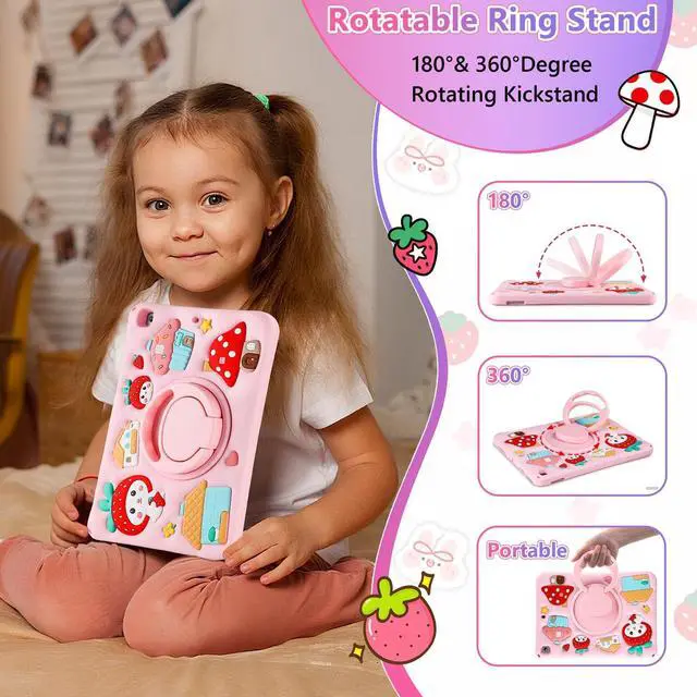 Safety Protection: This silicone strawberry tablet case for iPad 9/8/7th generation kids shockproof protective case is made from flexible silicone bumper to effectively prevent accidental drops, bumps and falls ^^