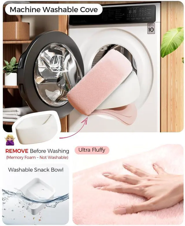 Machine-Washable Plush Cover: Soft & Easy CareOur iPad holder for bed has ultra-soft furry fabricjust like the feeling of petting cat fur. Removable, machine-washabledry, slip back on. Softness and coziness, no fuss ^^