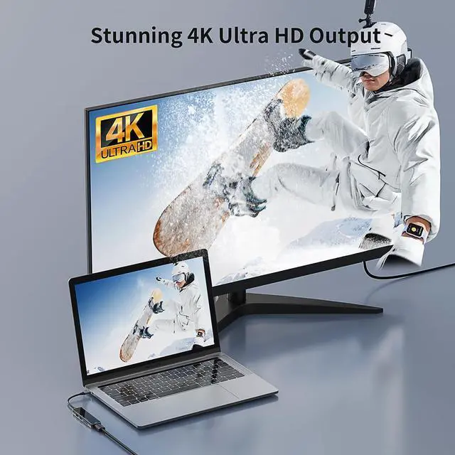5-in-1 Multiport USB C Hub Expand your laptop's connectivity with OVAW's adapter. It features a 4K HDMI port, a high-speed USB 3.0 port (5Gbps), a USB 2.0 port, and a dual SD/TF card reader. Simultaneously connect multiple peripherals like monitors, flash drives, and external storage through a single USB-C port. ^^ Stunning 4K HDMI Video & Mirror Mode Extend or mirror your screen to an external monitor, TV, or projector in breathtaking 4K Ultra HD resolution at 30Hz. Perfect for streaming movies, giving presentations, or enhancing your workflow with a dual-display setup.