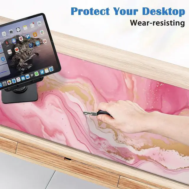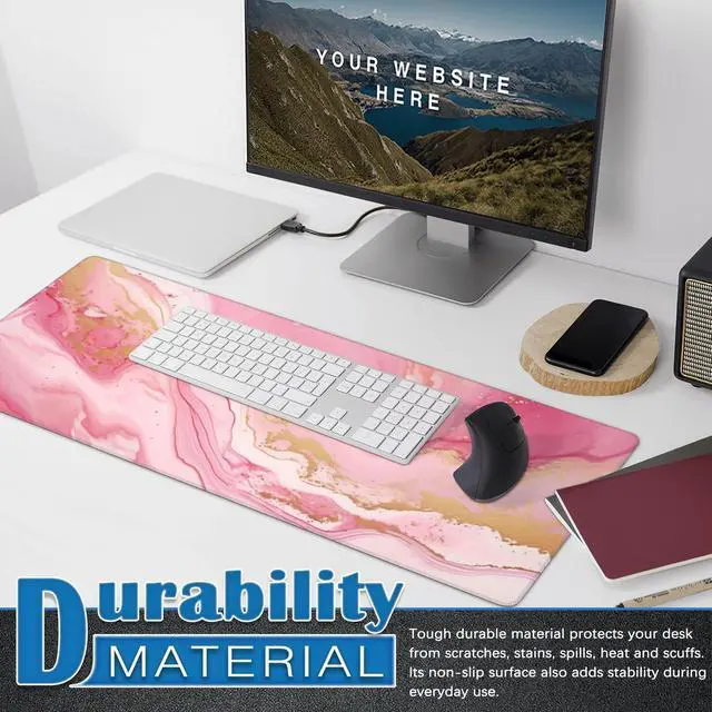 Environmental, and safe to use. ^^ Soft and Non-slip Rubber BaseThe soft and dense non-skid nature rubber base keeps the pad firmly in place, it can effectively prevent the mouse and keyboard from sliding and moving for stable operation. The desk pad is flexible enough to be rolled up for easy transport, to move around so you can work or game wherever you want. ^^ Suitable for many occasionsLarge enough size can protect the desktop from abrasion and liquid spills. Works well on all types of desks including wood, glass, leather, metal, marble desk and more.