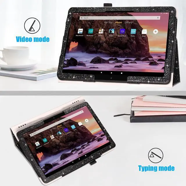 EASY TO USE STAND: The Fire HD 10 tablet case has a built-in flip stand. With our Fire 10 tablet case 2021, the screen can be angled at different angles to make it more comfortable to use when typing or watching videos. If you need to type with two hands, it's easy enough to do so by simply flipping the Fire 10 tablet case into typing mode. With this case, you can watch video hands-free. Our case will keep your tablet upright and stable on any surface.