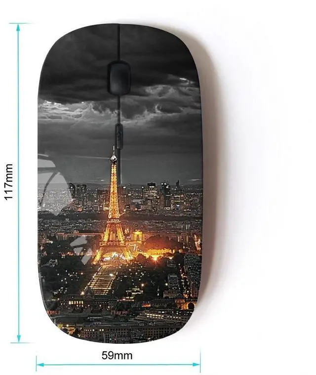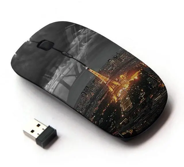 KawaiiMouse [ Optical 2.4G Wireless Mouse ] Eifel Tower Paris City Tourist Night Clouds