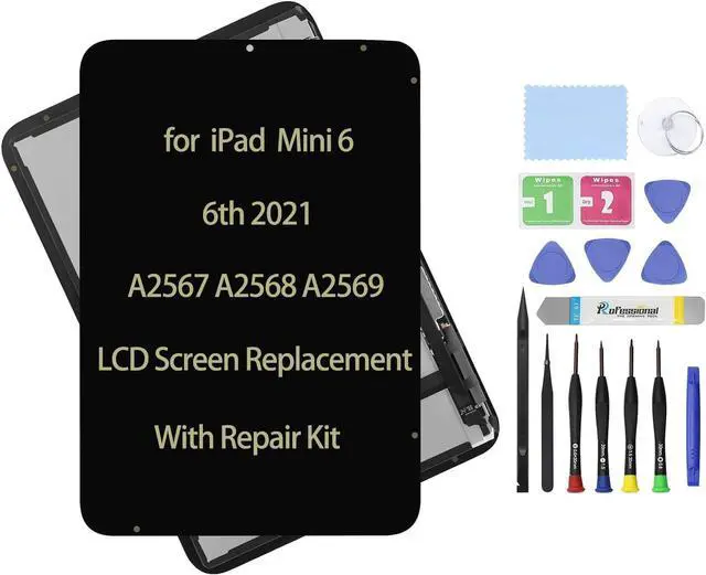 Compatible Mode: 8.3" Compatible with iPad Mini 6 6th 2021 A2567 A2568 A2569 MK7M3LL/A MLWL3LL/A MK7R3LL/A MK7P3LL/A MK893LL/A MLX43LL/A MK8E3LL/A MK8C3LL/A MK7T3LL/A MLWR3LL/A MK7X3LL/A MK7V3LL/A MK8F3LL/A MLX93LL/A MK8K3LL/A MK8H3LL/A Display LCD Screen Replacement Assembly Panel Premium Repair KitWHAT'S IN THE BOX? LCD Assembly Screen Replacement Premium Kit includes: (1) Brand new, factory tested full LCD Display screen with Glass Touch Digitizer Assembly Premium Tool Kit (1) Premium Screwdriver (1) Easy Opening Tool (Best tool ^^ Open device without damage ^^ Used by Pros) (1) Nylon Spudger (Safest ^^ Durable Pry Tool ^^ Not Cheap Plastic) (1) Fine Tip Curved Tweezers (High quality tool ^^ Prevent damage to flex cables during installation) (1) Cleaning Cloth (1) Adhesive Removal Pad/Alcohol Swab Pad (4) Pry Picks ^^ Warning ^^ Do Not Use Sharp Objects to