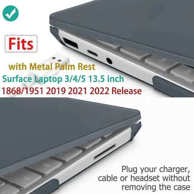 Surface Computer models: 13.5 -inch Microsoft Surface Laptop 5 / 4 / 3 / 2 / 1 Gen with Alcantara Keyboard!! 13.5 -inch Microsoft Surface Book / Surface Book 2 Computer15-inch Microsoft Surface Laptop 3 / 4 / 515.6 -inch Microsoft Surface Book 2 Computer 12.4 -inch Microsoft Surface Laptop GO 1/2Package including: 1x Hard Shell case + 1x Screen Protector + 1x Keyboard cover + 1x Dust plug