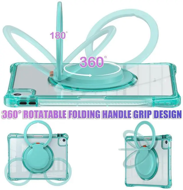 360. The large bracelet can be adjusted 180 at will. Provides maximum multi-functional viewing angles. Easy to use your tablet in your outdoor traveling, working, gaming with kids. Hanging your tablet on the wall easy access to your favorite shows. Provide protection and convenience when you play or work with iPad ^^