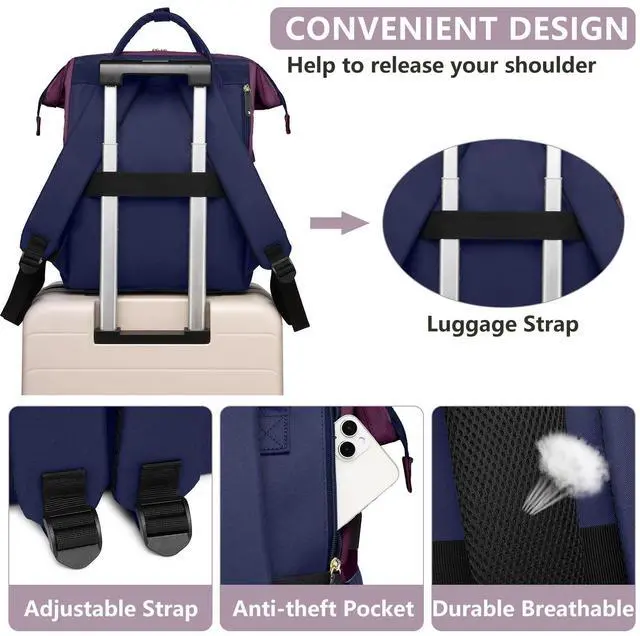 DescriptionLaptop Backpack for Womem Work Bags: 15.6 Inch Travel BackPacks With USB Charging Port Anti Theft Fashion College BookBag Durable Back Pack Purse Bussiness Daypack for Nurse Teacher Purple Blue