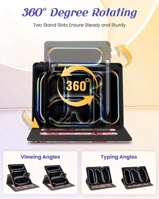 Rotating Stand: This for iPad Pro 13 inch case 2024 with an functional rotating stand design, supporting your devices to switch between landscape and portrait orientations. While 2 anti-slip strip design allow for multiple horizontal stand angles for comfortable viewing or typing ^^