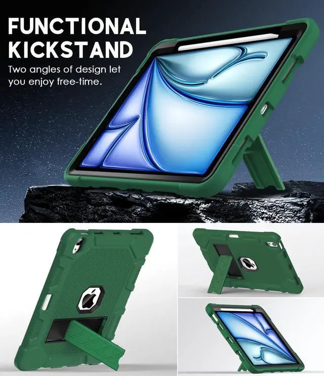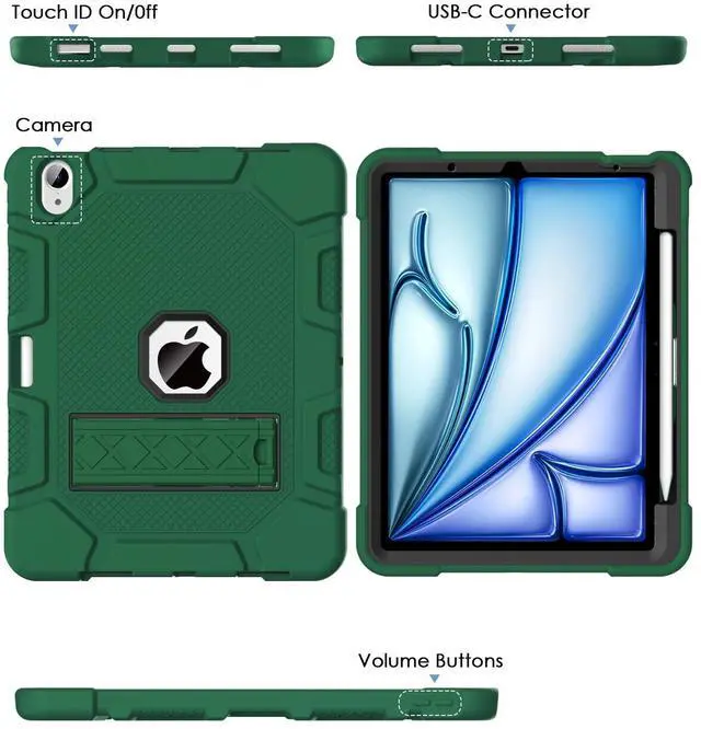 Release (Model number: A2316 A2324 A2325 A2072). [No Screen Protector] DO NOT fit other iPad ^^ [High-Quality Material] The case is made from high-grade thermoplastic polycarbonate and anti-skidding silicone, to create a perfect protection for your ipad. Not only shockproof/durable but also comfortable hand feeling ^^ [Apple Pencil Holder] Built-in Apple Pencil holder for your iPad Air 11 and iPad Air 5/4, you can charge your Apple Pencil Pro & Apple Pencil 2nd in the pencil holder when youre not using it, and avoid the losing or breaking your pencil when youre walking or outdoor(Note: Apple Pencil NOT Included) ^^ [Built-in Kickstand] Functional pop out kickstand allows easy access to your favorite shows, movies, and games while on the go ^^ [Precise Openings] Easy access to all the controls and features; Perfect cutouts for speakers, cameras, ports and buttons