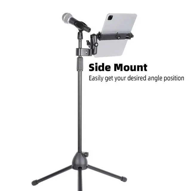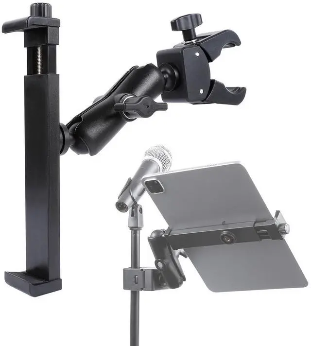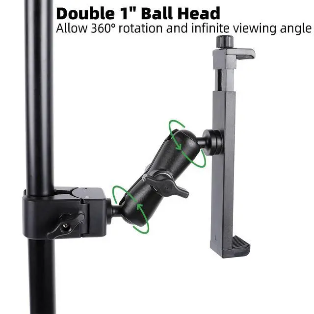 **Dual 360 Rotatable Adjustable Angle**: Enjoy complete flexibility with our dual 1 ball design that allows for 360-degree rotation and infinite viewing angles. This adjustable mic stand tablet mount is ideal for any positioning requirements during rehearsals or live performances.