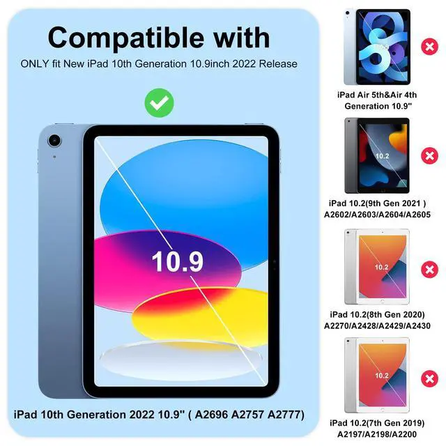 Generation 10.9 inch 2022(Model: A2696 A2757 A2777). NOT compatible with any other devices. Please check your ipad model before purchasing.