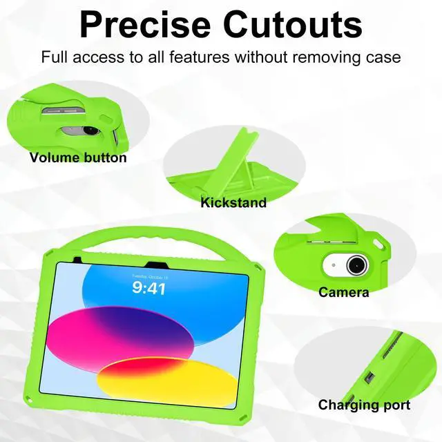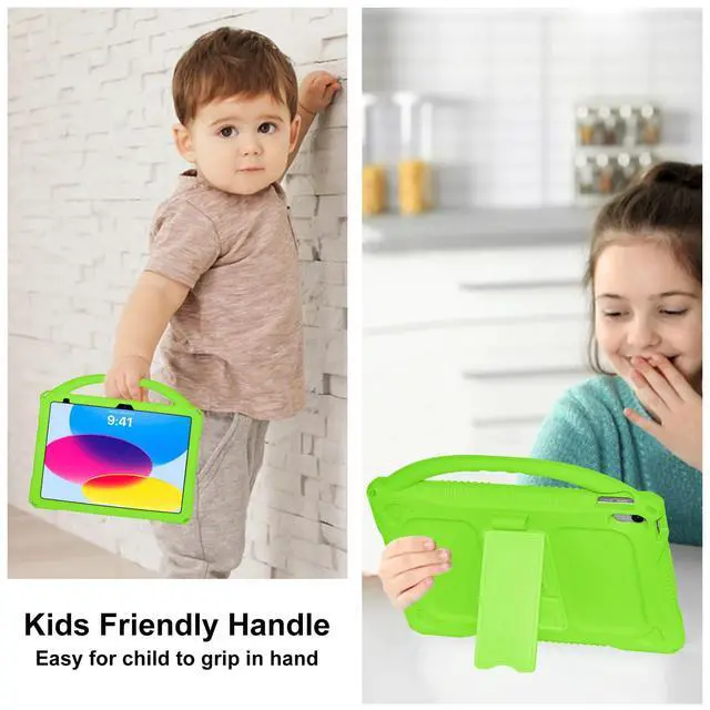 ^^ Built-in Kickstand Handle: Our ipad 10th Gen case come with non-slip handle and built in foldable kickstand, it makes your tablet with multi-angle watching, convenient for typing or watching movies, and super lightweight handle to make tablet easy carry around by children.