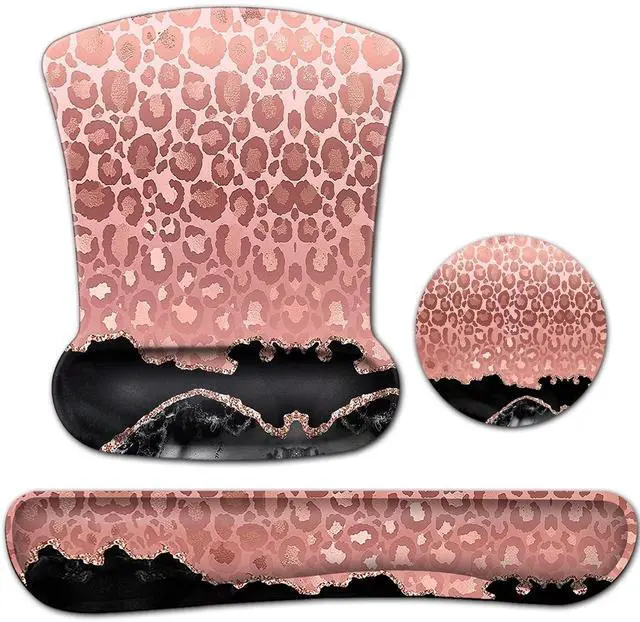 Mouse Pads for Desk for Women, Soft Memory Foam Keyboard Wrist Rest, Ergonomic Mouse Pad Coaster,Easy Typing Pain Relief,Keyboard Mousepad Set,Fashion Rose Gold Leopard and Black Marble Design