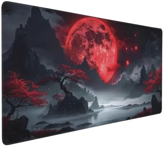 35.4 x 15.7 in, Waterproof XXL Large Mouse Pad for Desk, Extended Keyboard Mouse Mat for Computer Office, Big Laptop Mouse pad, Gaming Pc-Darkness Red Moon