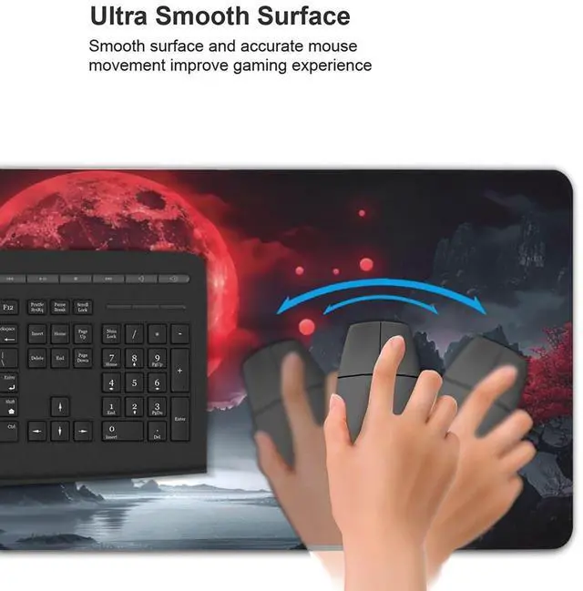 XXL Extended Desk MatOur 35.4" x 15.7" (900x400mm) oversized mouse pad provides ample space for both keyboard and mouse, perfect for multitaskers. The 3mm thickness offers optimal comfort during extended gaming sessions or office work while protecting your desktop surface. ^^ Waterproof & Smooth SurfaceEnhanced with nano-coating technology, this waterproof desk mat resists liquid spills and sweat stains. The precision-textured surface ensures flawless mouse tracking accuracy for competitive gaming, while durable Stitched edges for long time using. ^^ No-Slip Rubber BaseNon-slip Rubber backing keeps the entire surface in place of the cloth from bunching up to maintain smooth mouse movement across the entire desktop ^^ Unique Custom DesignsShowcase your style with exclusive artistic patterns available in multiple themes.