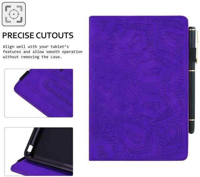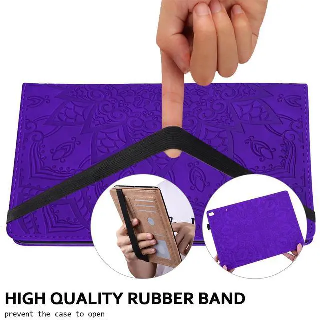 Features: Pretty mandala flower embossed surface, offers exquisite and attractive look for your tablet. Easy access to all features and controls (camera, charging port, volume button, etc) without removing the case. Elastic strap closure ensures cover securely closed, double fixing your device when fold the front cover backward for reading. Front-to-back protective cover case give a full protection for your tablet against dust, water, fingerprints, scratches, shocks and bumps. Interior with 2 card holders for carrying your ID/ credit cards/ business cards/ photos. Side with an elastic loop holder for stylus.