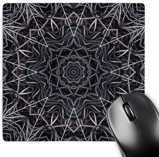 Dark Gothic Ornament Mandala Mouse Pad is 8" x 8" x. 25" and is made of heavy-duty recycled rubber. Matte finish image will not fade or peel. Machine washable using a mild detergent and air dry.
