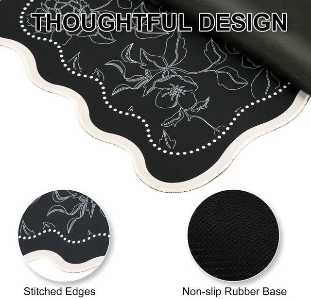 Retro Irregular Scalloped Design: Black floral desk mat features a unique scalloped design, making it more stylish than traditional rectangular mouse pads. The boho flower desk pad mat with exquisite stitched edges for wear resistance and durability, adding a touch of elegance to your desktop ^^ Large Desk