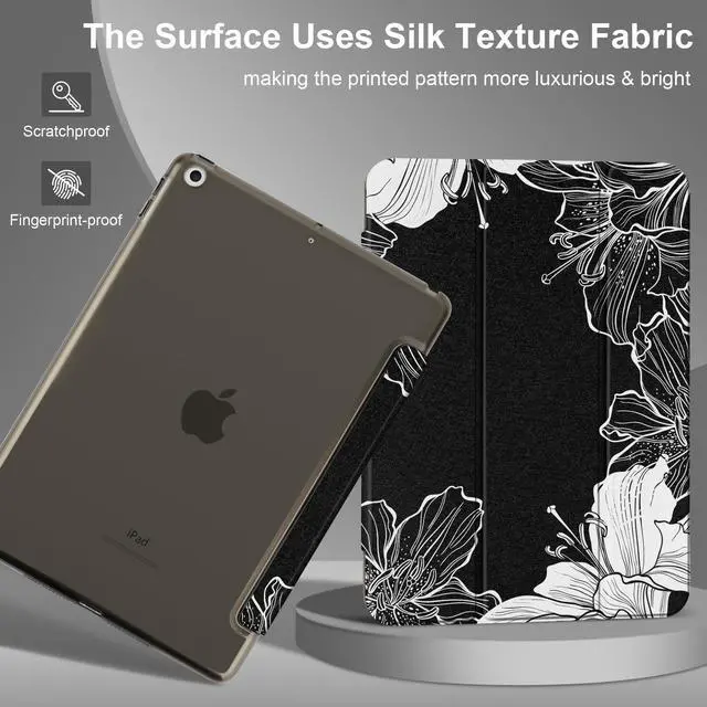 MEEgoodo Case for iPad 10.2 inch, Case for iPad 9th Generation 2021/ 8th Generation 2020/ 7th Gen 2019, Tablet Cover with Silk Texture & PC Back Cover, Lily Floral
