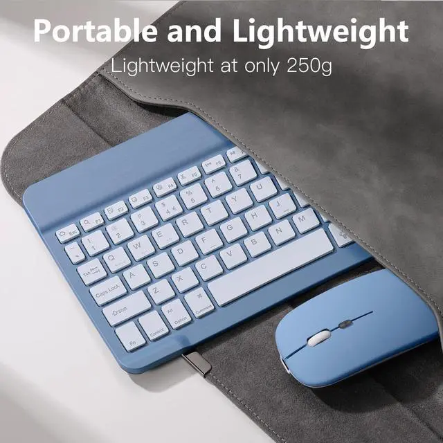 Recommendation: A 6-hour initial charge is recommended for optimal battery performance. ^^ Ultra-Slim & LightweightDesigned for portability, this for iPad keyboard and mouse are travel-friendly and lightweight, adding minimal weight and taking up little space in your bag. You can easily take it anywhere. The ultra-slim keyboard for iPad pairs seamlessly with your tablet for a sleek, harmonious look. ^^ Adjustable DPIThe Bluetooth mouse features three adjustable DPI levels800, 1200, and 1600to suit different users' cursor speed preferences. Its silent button design allows you to work in quiet environments or late at night without disturbing others. This Bluetooth mouse and keyboard set is ideal for use in quiet settings such as offices, libraries, and bedrooms.