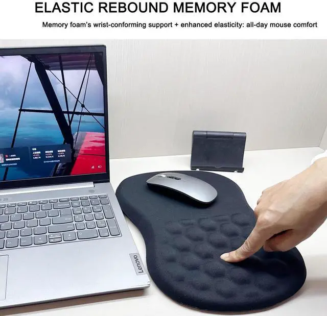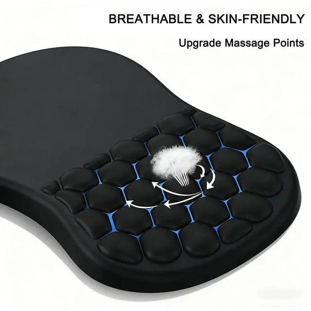 Wrist Rest: Our black ergonomic mouse pad features an 8-degree slope and a built-in wrist support with massage protrusion design. It supports your wrist in a neutral position, reducing strain and preventing pain. The elevated design promotes airflow for cool, dry comfort during long work or gaming sessions.