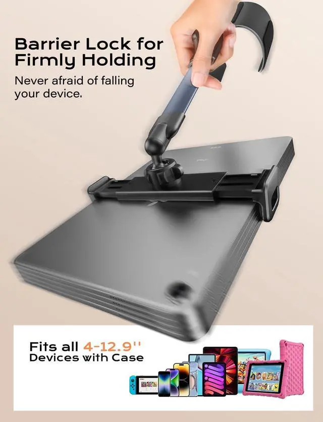 DEVICE: This cup holder tablet mount is suitable for all 4-13'' devices, such as mobile phones, tablets, kindle, switch, etc. And please note that the tablet cup holder mount is only for 3''- 4.3 '' diameter cup holder