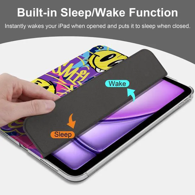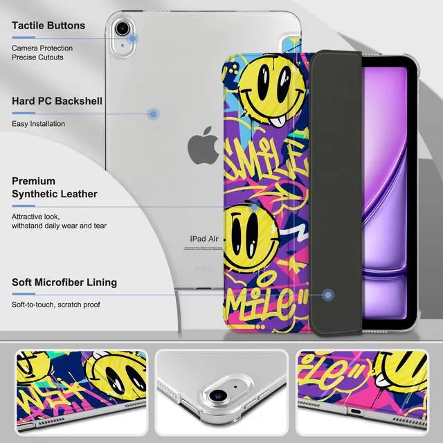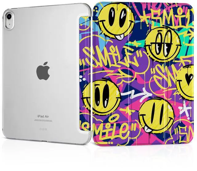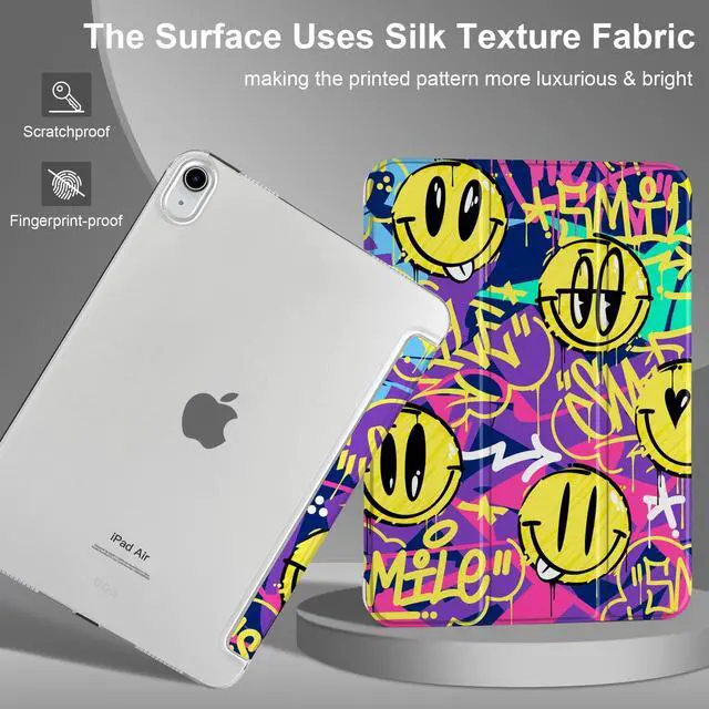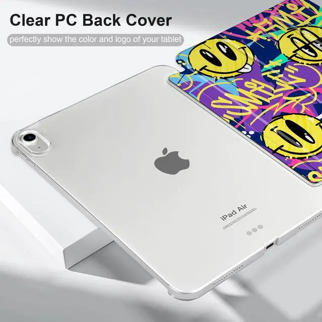 MEEgoodo Case for iPad Air 11-inch M3 (2025) / M2 (2024),Case for iPad Air 5th/4th Generation 10.9 inch 2022 2020, Tablet Cover with Silk Texture & PC Clear Back Cover, Art Graffiti Style