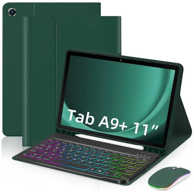 Compatible ModelsThis keyboard cover is compatible with Samsung Galaxy tablet A9+ 11-inch (2023 version), models include SM-X210/X215/X216/X218. Please check your tablet model "SM-Xxxx" in your tablet "Settings" before purchasing. (This product does not include: tablet, pencil! ) ^^ Rainbow Backlight, Multi-Function KeyboardSuitable for Samsung tablet A9+ RGB rainbow backlight keyboard, 7 adjustable backlight colors, breathing light backlight mode can be automatically switched. The backlit keyboard can be used in the dark, providing a comfortable typing experience. Rich function shortcut keys allow you to use Samsung Tablet A9+ more efficiently & comfortably, such as editing documents, navigating applications, creating presentations. ^^ Precise Hole Position, Honeycomb Design The mold for A9+ case is made based on the real A9+ tablet, and the precise cutouts can make full use of all functions, and provide perfect protection and convenience for daily use. The soft TPU inner shell adopts a honeycomb design, which is beneficial to the heat dissipation of the tablet and improves the performance of the tablet. ^^ Multi-Angle Adjustment, Detachable KeyboardThe protective case has 3 anti-slip grooves, supporting 100, 110 and 120 angles, allowing you to use the tablet at a comfortable tilt angle and enjoy reading, drawing, watching, chatting, etc. The detachable keyboard can be used alone and can be removed when not in use, making it very convenient to carry.