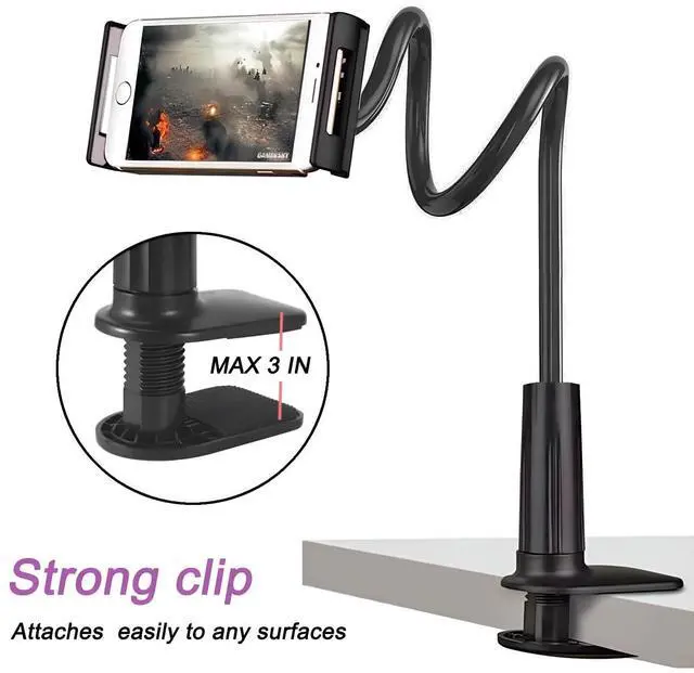 FLEXIBLE LONG ARM GOOSENECK: Featuring a robust, flexible long arm gooseneck, this mount holder clip provides the perfect angle for your needs, cause it is designed to be more sturdy, please bend the holder with both hands when using it. If the holder is soft, it cannot secure your device. ^^