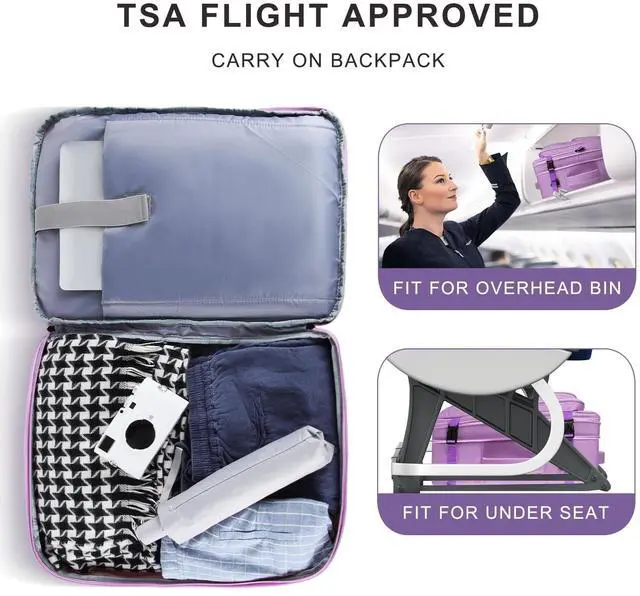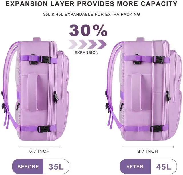 Lifetime PromiseYGSNTG Travel backpack: You can get lifetime commitment and friendly customer service support. If you have any questions about this Travel Laptop Backpack, please contact us and we will answer you within 24 hours. Expandable travel laptop backpack brings great convenience for traveling, studying and working. This product is not suitable by 12 and under ^^ Expandable & Large CapacityThis expandable travel backpack is 35L with 20 x 15 x 7 inch before expansion and 52L with 20 x 15 x 8.7 inch after expansion. Carry on backpack men women has 12 pockets and the laptop backpack has a padded compartment that can fit a 18.4 inch laptop. The travel backpack's multiple pockets are designed to hold books, clothes, wallets, water bottles and more, keeping your belongings organized ^^ TSA Flight ApprovedThe expandable travel backpack is TSA-enabled and helps you get through security quickly by unfolding the backpack 90-180. Large Carry on backpack has straps in the main compartment to secure your personal belongings. As an airline approved carry on laptop backpack can be carried overhead and under your seat. The backpack is great for women, men, weekenders or business travelers ^^ Sturdy & MultipurposeAdjustable and breathable travel backpack shoulder strap to reduce the pressure on your shoulders.
