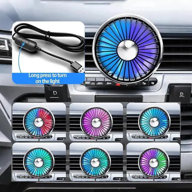 QUIET OPERATION AND COLOR LIGHTS: This car vent fan operates at less than 30db and will not disturb your rest. Meanwhile, it is designed with colorful gradient ambient lights to bring you a romantic atmosphere effect when driving at night [Ps: press and hold the switch for 3 seconds to turn on the lights]. ^^