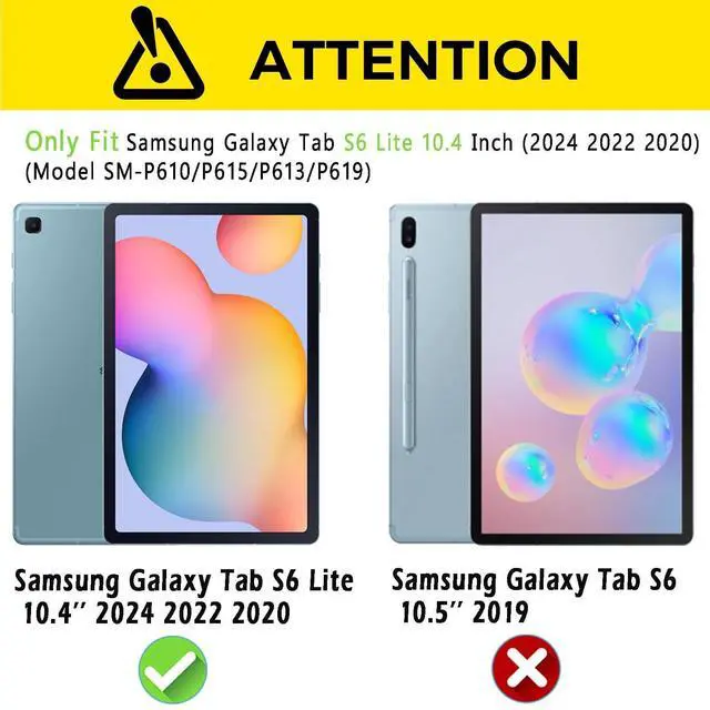[Compatibility] Compatible with Samsung Galaxy Tab S6 Lite 10.4 2020/2022/2024 Model (SM-P610N, SM-P615, SM-P610, SM-P613, SM-P619). Any other model device do not fit ^^ [All-round Protection] The case is not easy to fall off, wrapping your Tab S6 Lite Tablet securely, can withstand considerable wear and tear, provide extreme shock protection against drops and other impacts ^^ [High Quality Materials] Made with dense impact-resistant and kids-safe Environmentally friendly materials. Don't worry about hurting your child ^^ [Precise] Cutouts for easy access to Galaxy Tab S6 Lite tablet buttons, ports, speakers and rear camera.