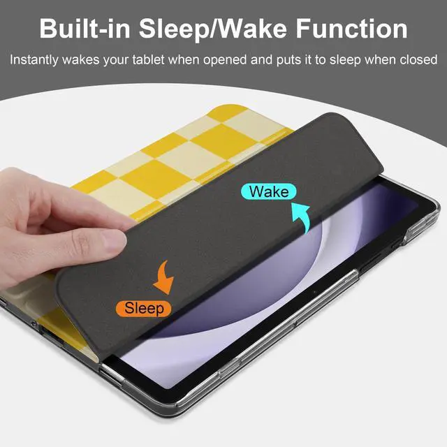 MEEgoodo for Samsung Galaxy Tab A9 Plus 11 inch Case 2024 2023 (Fit Model SM-X210/X216/X218), A9+ Tablet Cases with Silk Texture & PC Clear Back Cover, Yellow Squares